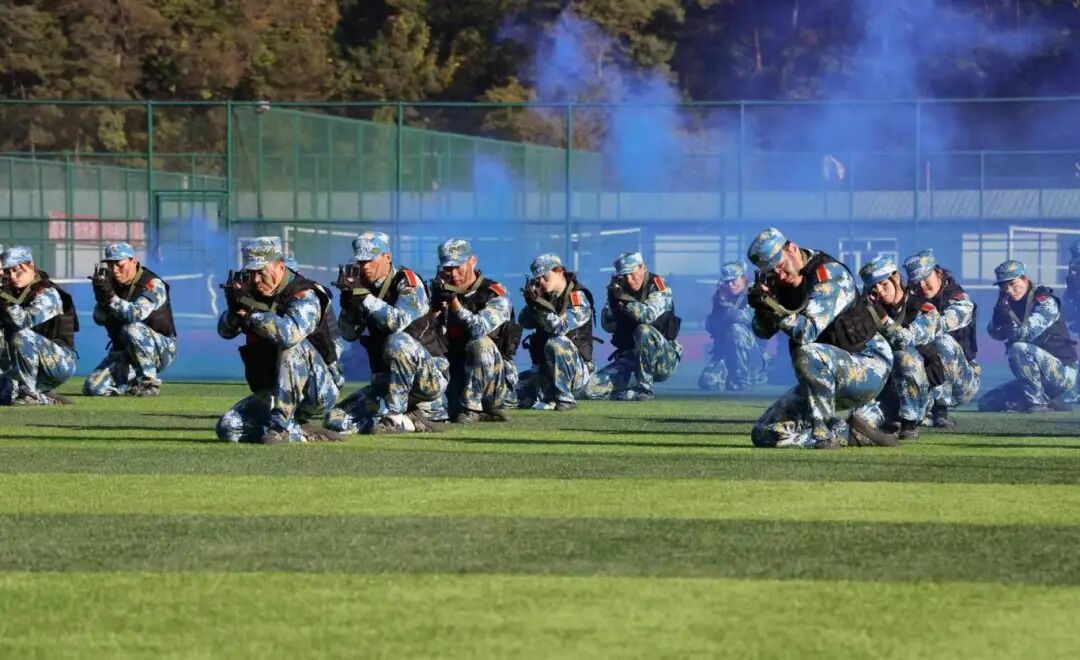 在军事科目汇报展示环节,格斗术方队动作迅猛有力,呐喊声气势如虹;匕首操方队招式凌厉,动作整齐划一,展现出果敢勇毅的战斗作风;战术格斗综合展示更是将现场气氛推向高潮,队员们协同配合,战术动作娴熟,赢得了现场阵阵掌声。