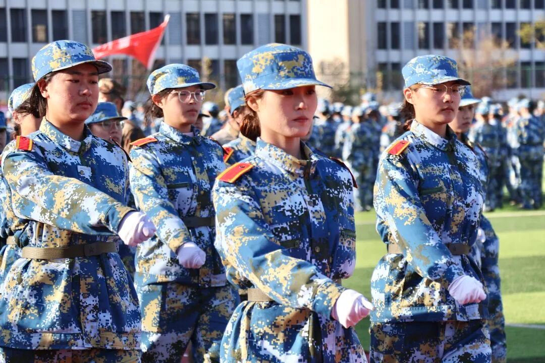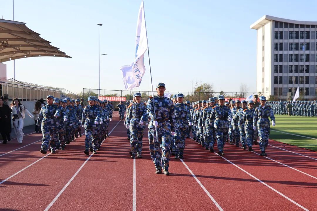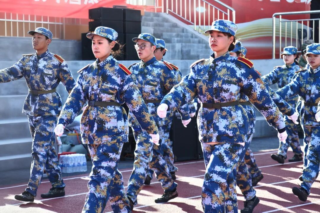 随后进行的分列式上,各受阅连队步伐铿锵、口号嘹亮,依次通过主席台。2025级参训学生军姿挺拔、目光坚毅,以整齐的队列和饱满的斗志,充分展示了军训的丰硕成果与新时代青年的蓬勃朝气。