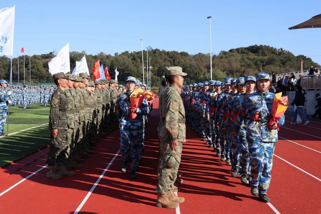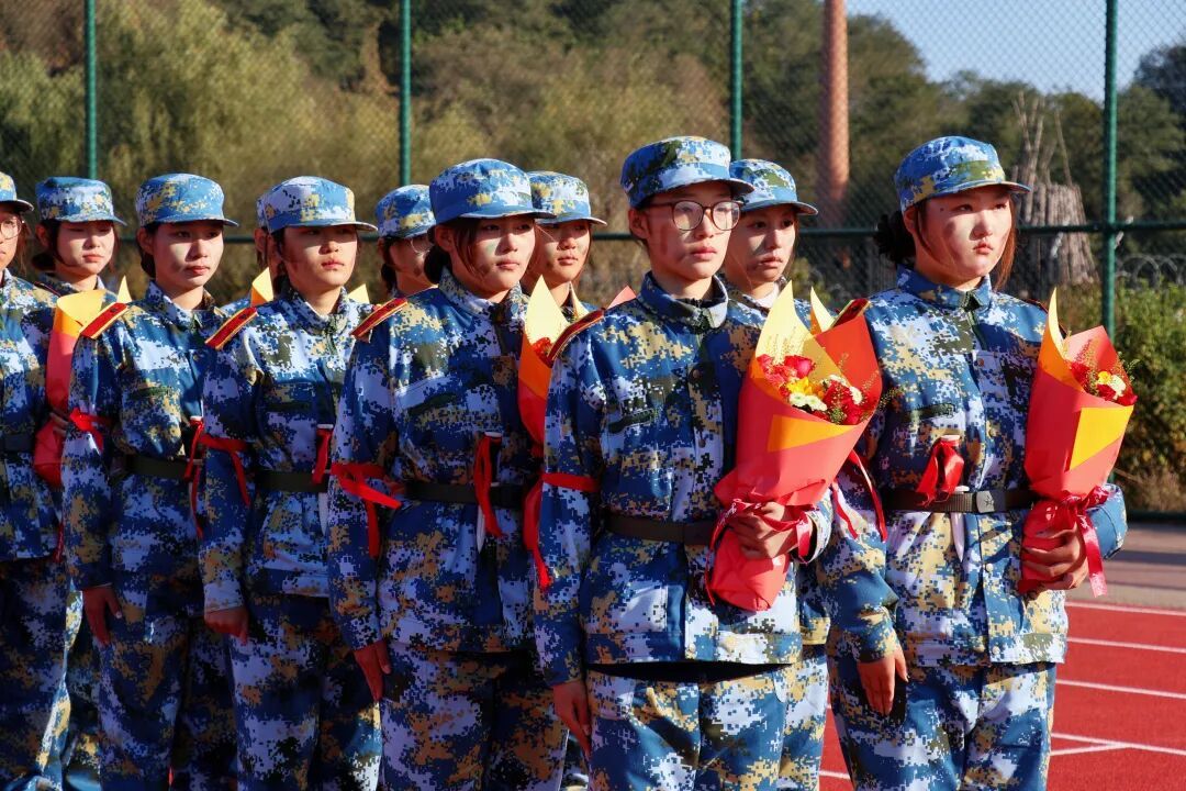 为感谢承训部队官兵的辛勤付出,学校领导向部队代表赠送了锦旗,学生代表向全体教官敬献了鲜花,表达了全校师生对教官们严谨执教、无私奉献的崇高敬意。