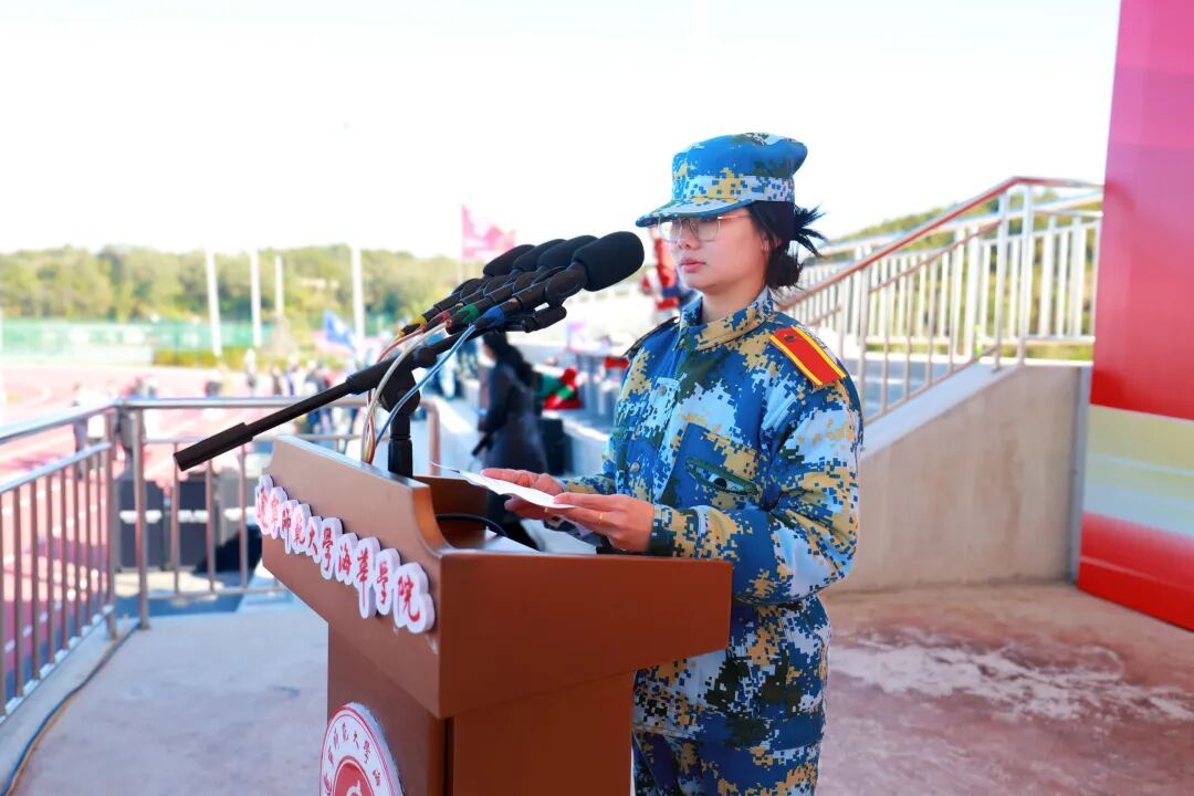 2025级汉语言文学专业学生和柳菲作为新生代表发言。她向全体教官和老师致以诚挚感谢,并表示将通过延续军训中养成的优良作风,在未来的学习生活中自信昂扬、奋发向上。教官代表在随后的发言中,充分肯定了同学们在军训期间展现出的顽强拼搏精神和严明组织纪律性,并鼓励大家将这份收获转化为成长动力。