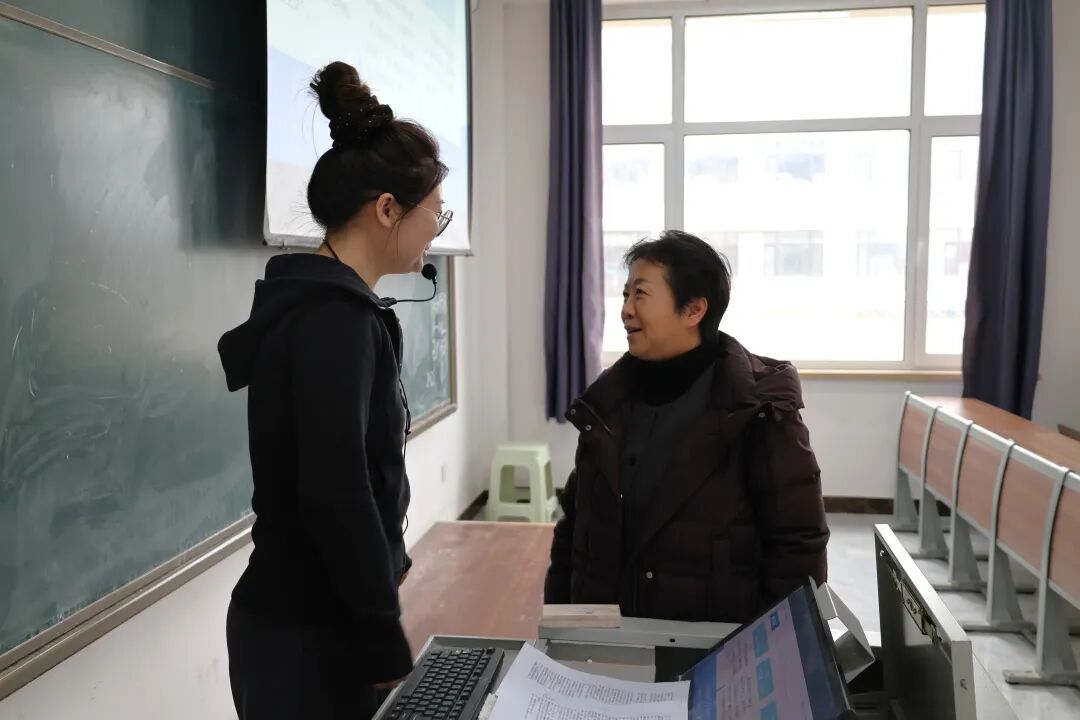 课堂上,同学们精神饱满,认真听讲。课间,校领导与教师深入交流,充分肯定其教学态度、专业功底和课堂组织,勉励他们继续弘扬教育家精神,坚守师德师风,将立德树人融入教育教学全过程。校领导指出,教师应主动提升数字素养,善用AI工具赋能教学;要精选贴近学生的鲜活案例,在知识传授中浸润价值引领,在能力培养中厚植家国情怀,实现教书与育人相统一,切实将教育家精神转化为务实提高教学质量的实际行动。